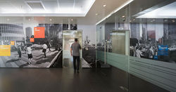 חלל 1: חלל מבואה אינטראקטיבי שבו ניתן לחוות יכולות טכנולוגיות מתקדמות של החברה. בכדי להתאים את החלל למצבי שימוש משתנים תוכנן החלל סביב ספסל דינמי המאפשר חלוקות שונות של החלל הפתוח וחשיפה להקרנות מידע ע"ג הקירות.